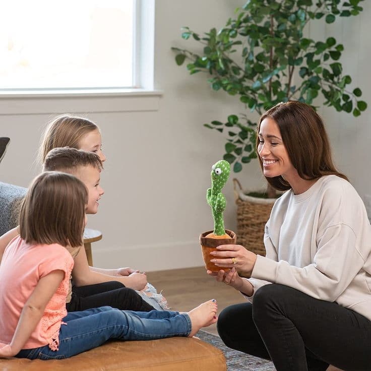 Es un juguete diseñado especialmente para desarrollar las habilidades motrices y de comunicación de los niños, porque sabemos que estos aprenden imitando; ahora se podrán entretener, reír, bailar, aprender a hablar y pasar un buen momento familiar en la compañía del Cactus Bailarín.